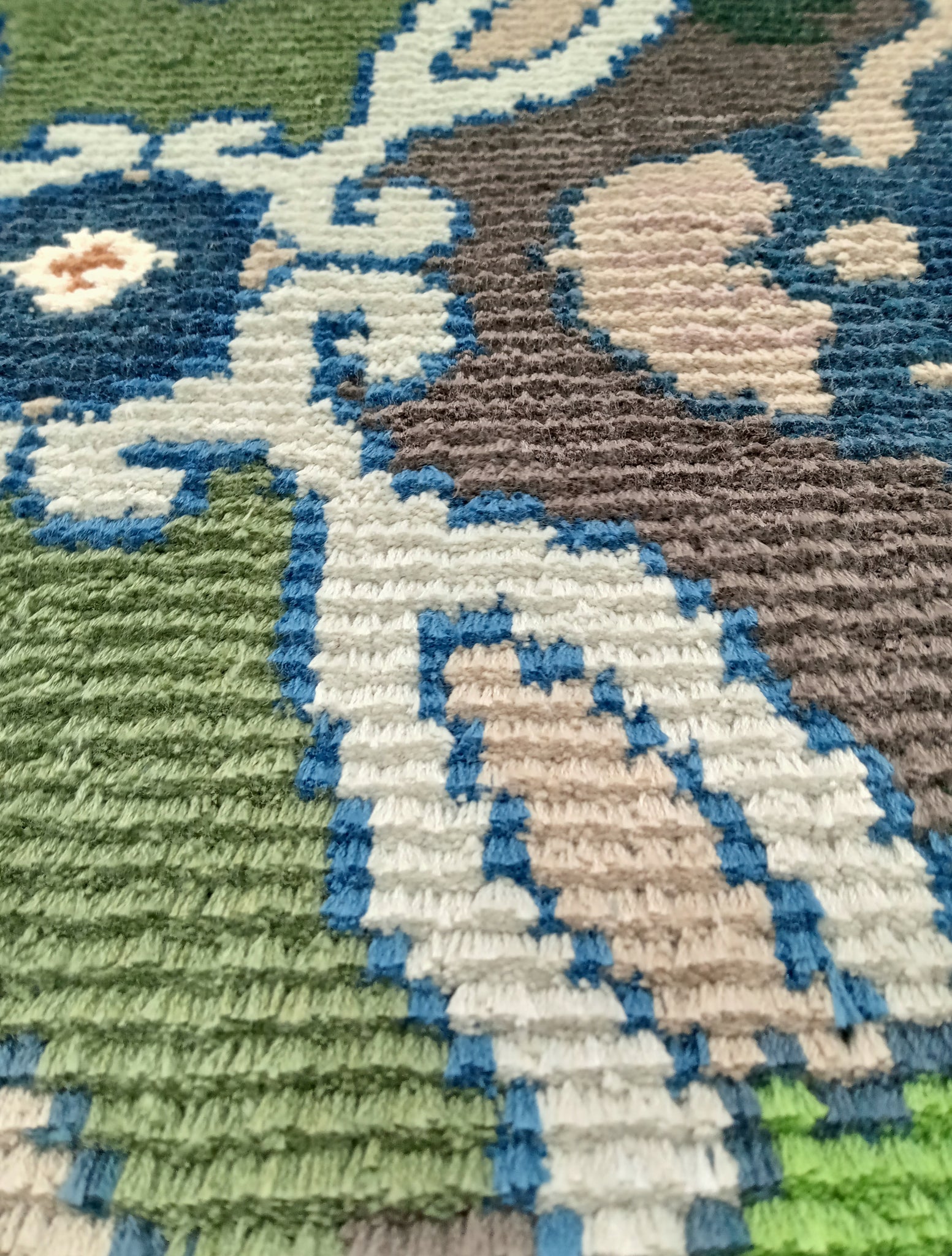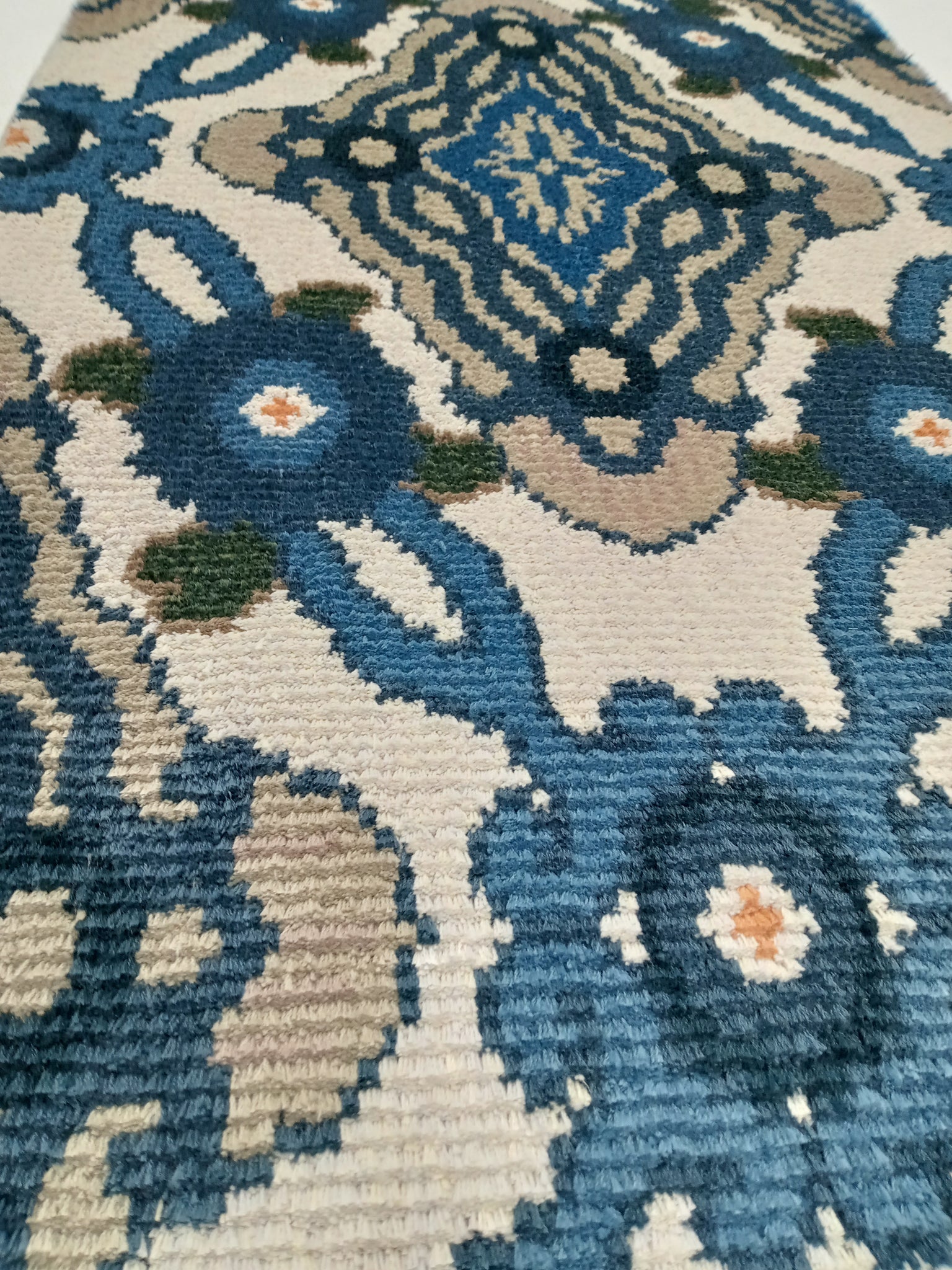 現代の暮らしに溶け込む、使いやすいサイズとし、つなげて使う事もできるように図柄や糸で統一感を出しました。