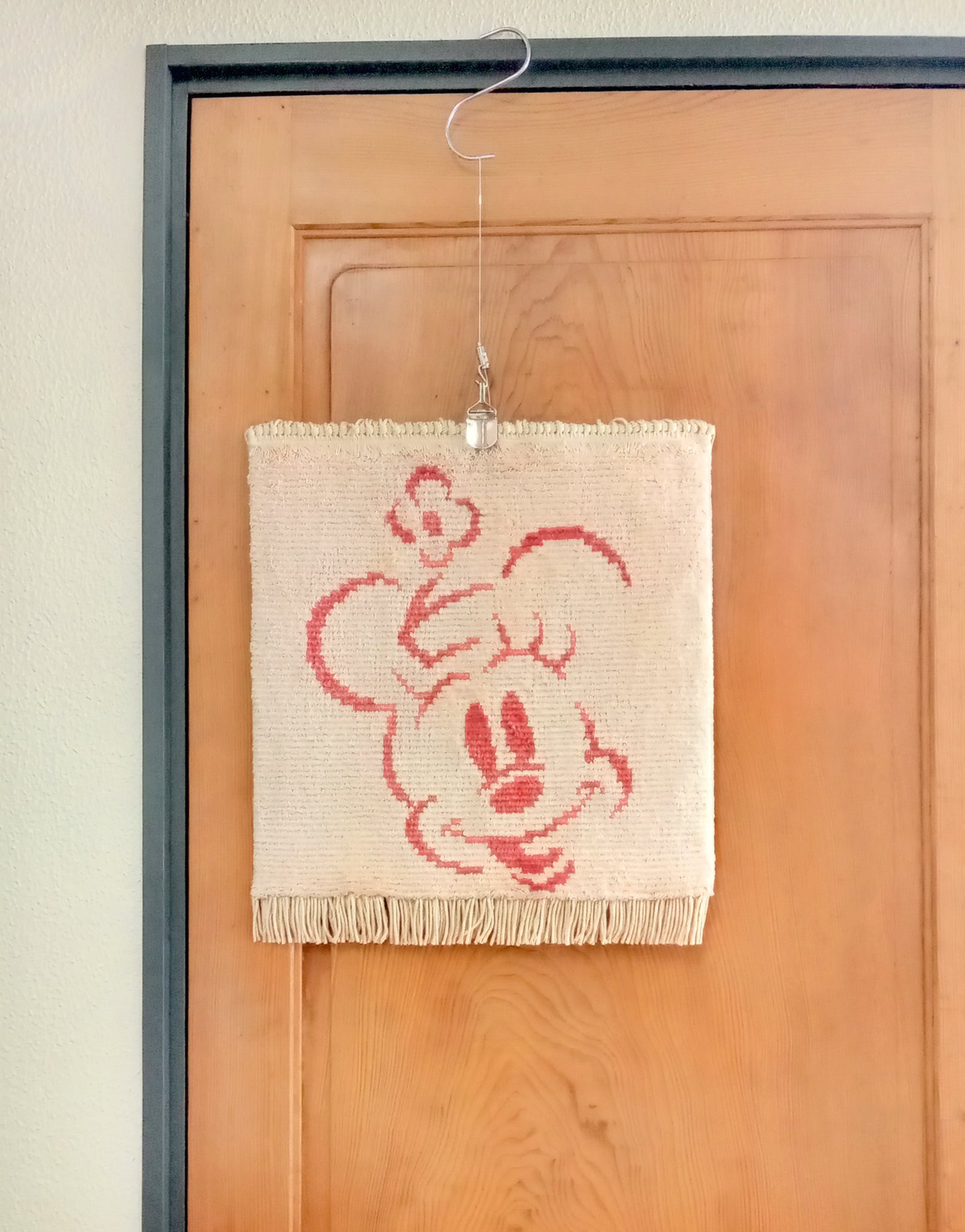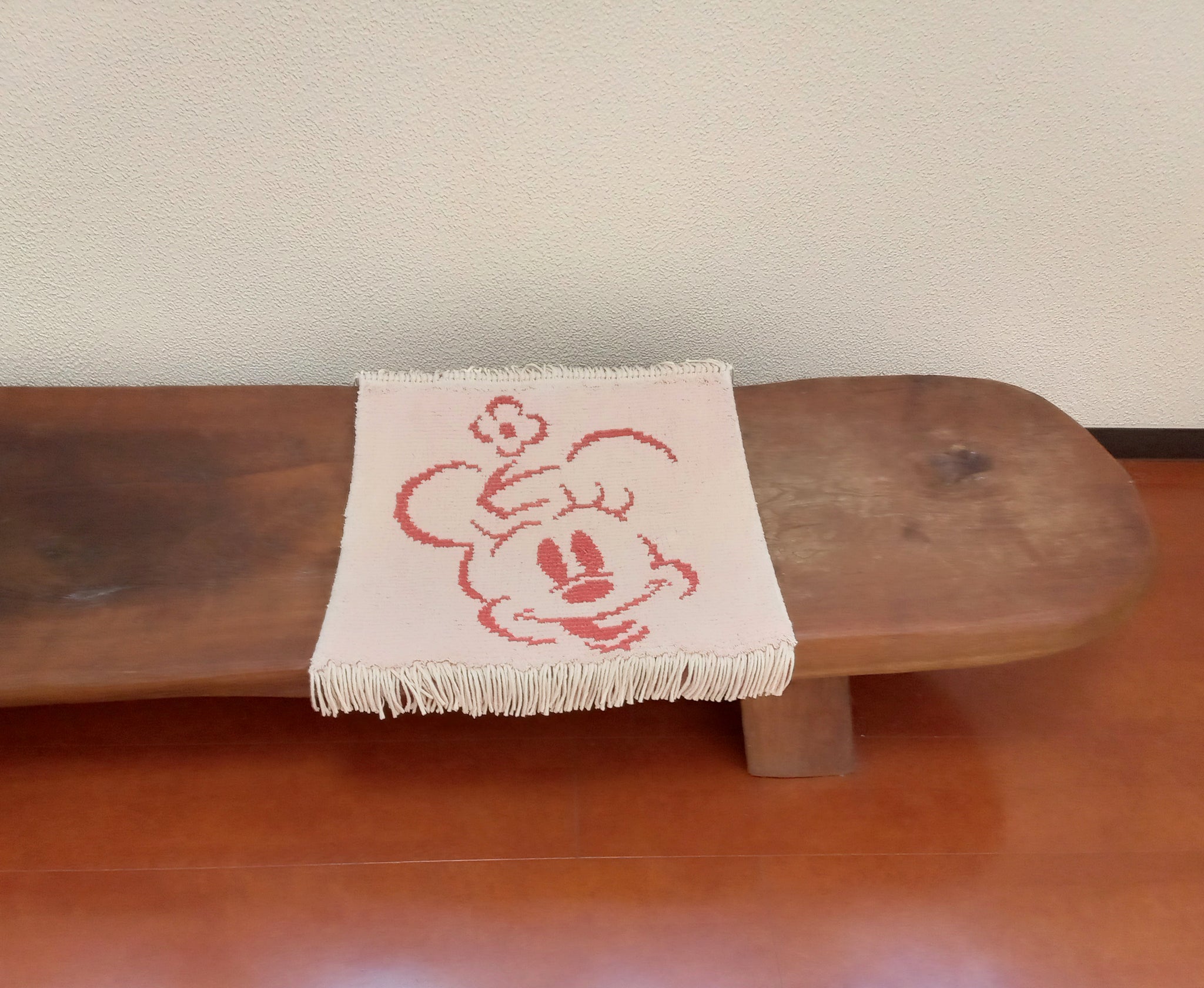 世界のミ二―マウスをコンパクトサイズに織り上げた緞通です。